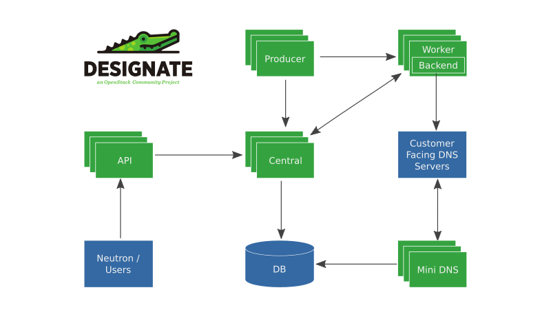 Designate is an OpenStack service that allows users and operators to manage DNS records, names and zones via a REST API and can configure existing DNS name servers to contain those records. Designate can also be configured by an operator to integrate with both the OpenStack Network Service (Neutron) and the Compute Service (Nova) so that records are automatically created when floating IPs and compute instances are created respectively, and uses the OpenStack Identity Service (Keystone) for user management. Since there are a multitude of software implementations of the DNS name server, Designate has a pluggable backend that can be configured to manage many of them, most notably BIND9 and PowerDNS.