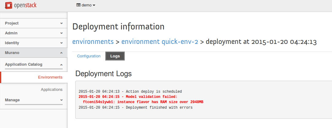 Remove the existing murano policy and create a new murano policy configured for the demo project, by running: