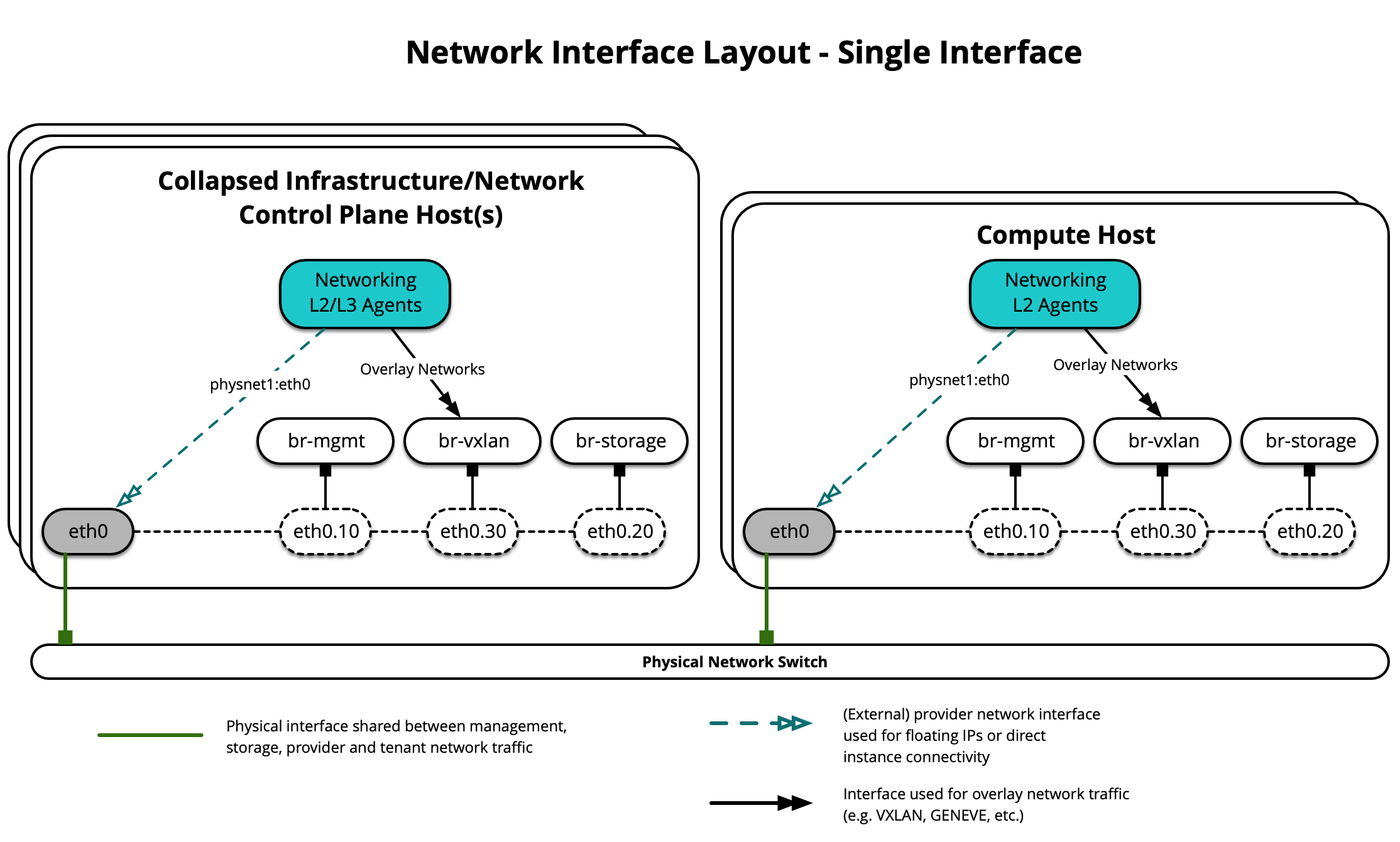 The following diagram demonstrates hosts using multiple interfaces for OVS Scenario: