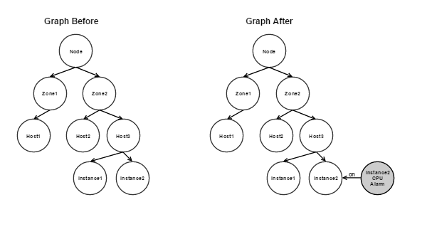 - The Entity Processor passes the event to the Aodh Alarm Transformer, which returns a Vertex with the alarm data, with an edge to the instance Vertex