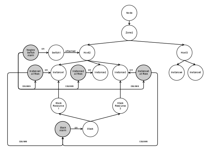 - The Evaluator performs its calculations and deduces that alarms should be triggered on every instance on every host attached to this switch