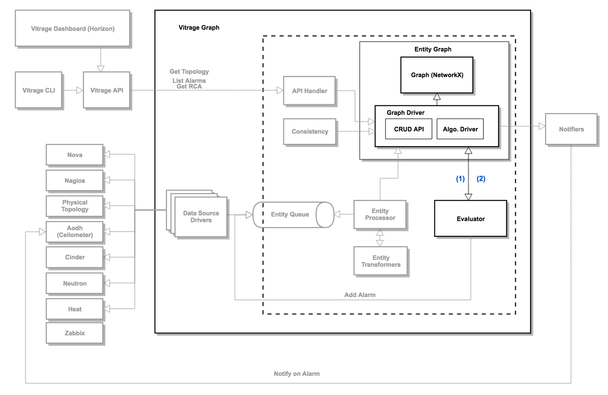 - The Evaluator is notified about a new Vertex (Nagios switch alarm) that was added to the graph
